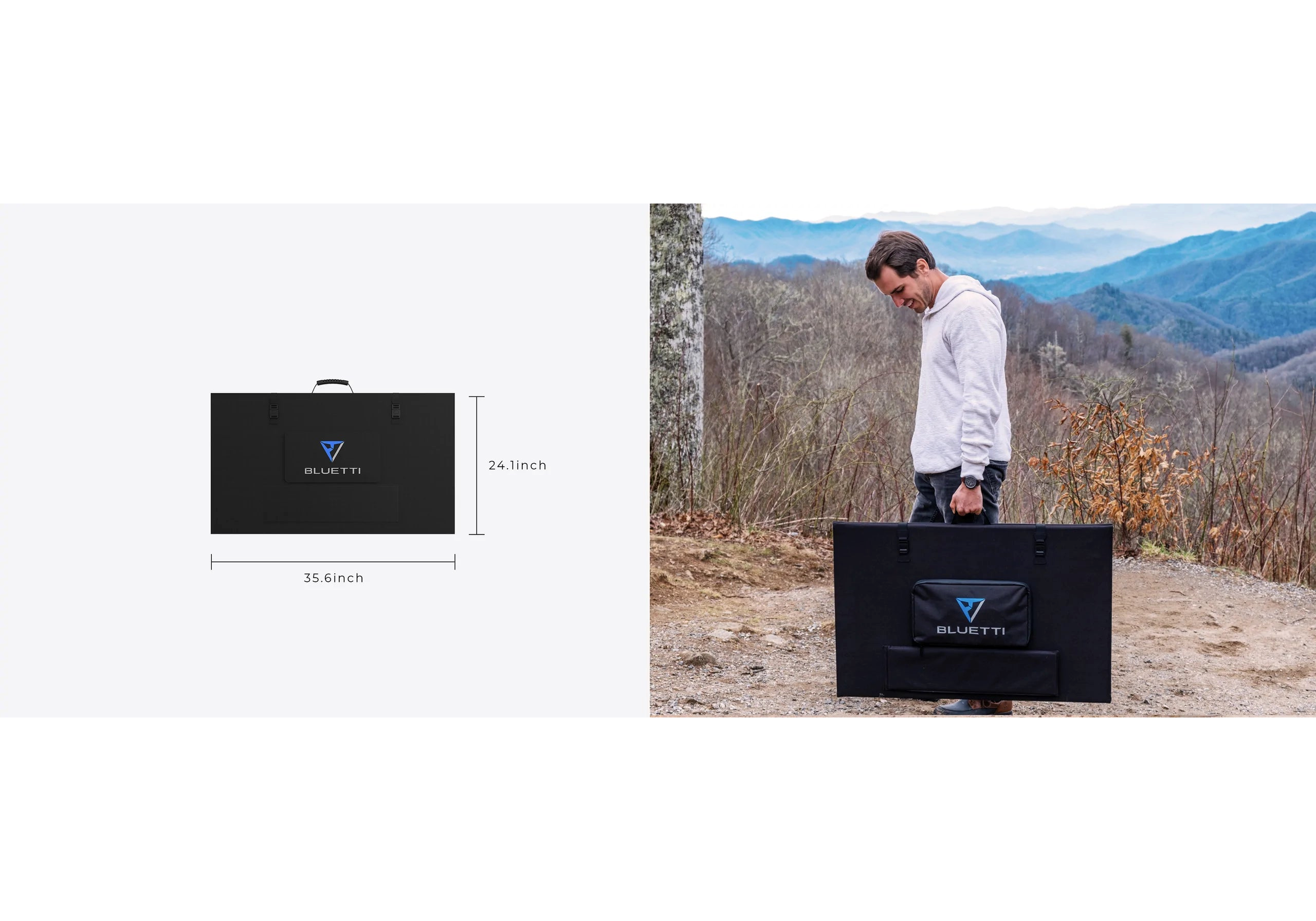 With a folded size of 35.6*24.1*2.5inches and 30.61lbs of weight, the BLUETTI PV350 is convenient to carry around and easy to be set up for anyone, anywhere.