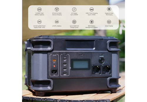 Stay off-grid whenever you want with the PS1300 Portable Power Station from EZVIZ. With its powerful 1,324Wh capacity, lightning-fast charging, and unmatched durability, it's your ultimate solution for all situations. From blackouts to outdoor adventures, the PS1300 keeps your devices and appliances running. Plus, it's eco-friendly, allowing you to harness solar power without compromising speed. Whether it's an emergency or a new adventure, the PS1300 has you covered.