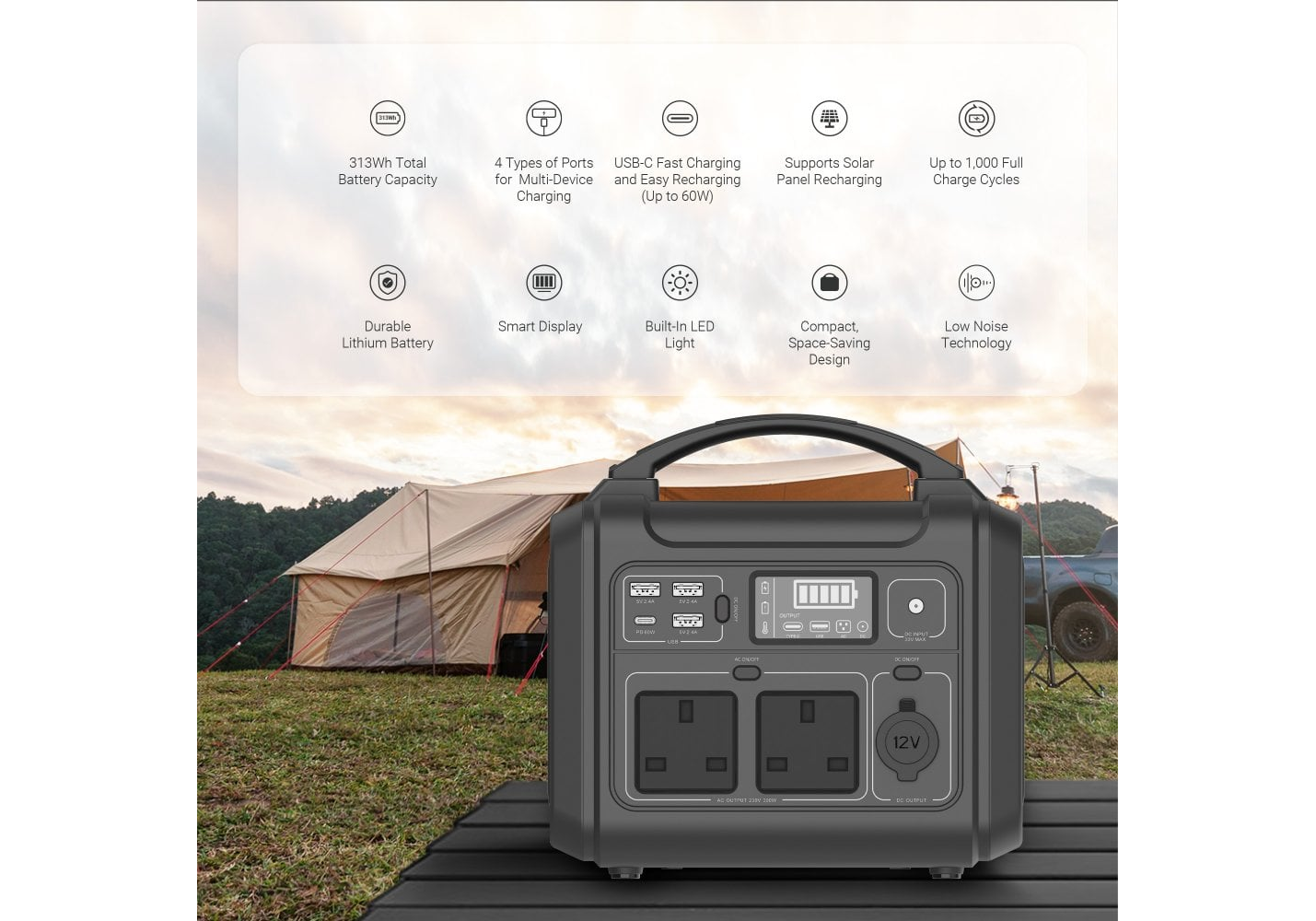Introducing the PS300 Portable Power Station from EZVIZ – your reliable and versatile power companion for all your outdoor adventures and power outage needs. This compact and lightweight power bank packs a whopping 313Wh of power capacity, making it ideal for powering small appliances and essential electronics on-the-go.